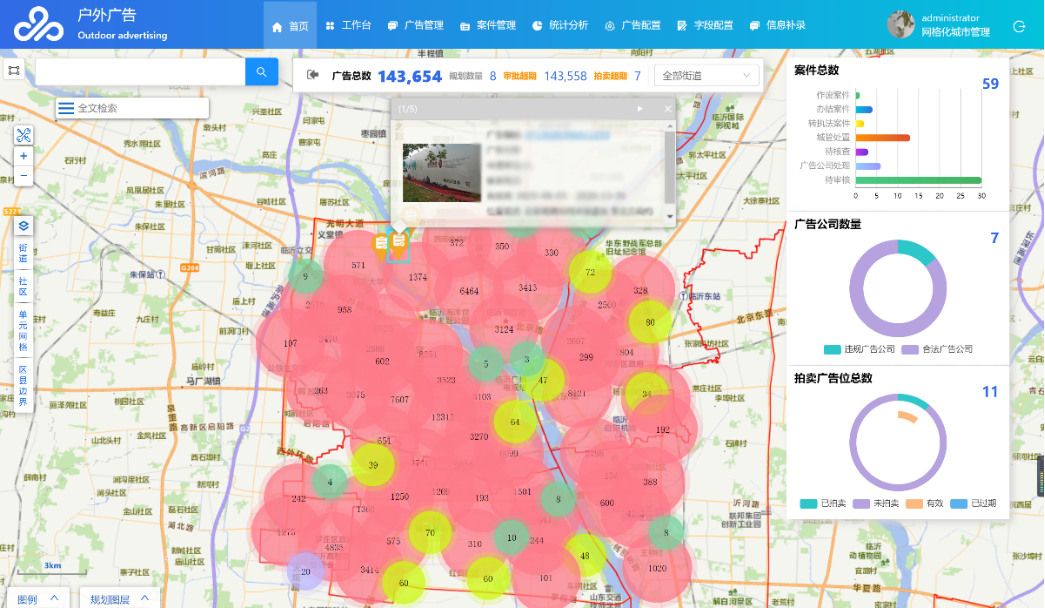 即刻了解實(shí)地測(cè)繪戶外廣告投放位置信息,調(diào)查廣告內(nèi)容、大小等基本信息,與廣告審批業(yè)務(wù)臺(tái)賬進(jìn)行梳理對(duì)齊,建立戶外廣告數(shù)據(jù)庫(kù),輔助開(kāi)展戶外廣告的審批、執(zhí)法和運(yùn)行。