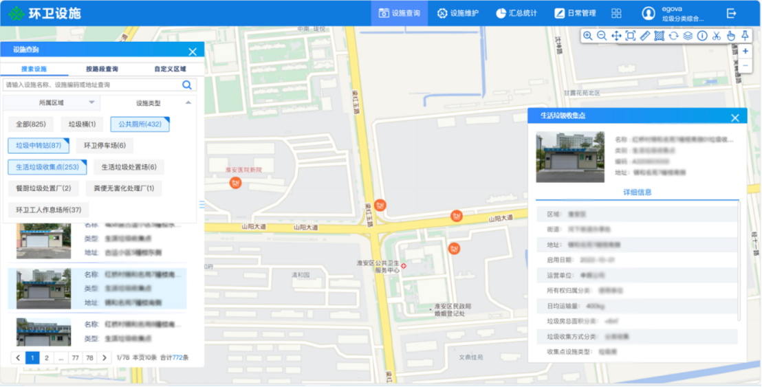 即刻了解實(shí)地調(diào)查淮安市200平方公里城區(qū)內(nèi)垃圾中轉(zhuǎn)站、餐廚垃圾處置場(chǎng)、生活垃圾收集點(diǎn)、環(huán)衛(wèi)停車場(chǎng)、公共廁所等11類城市環(huán)衛(wèi)設(shè)施,了解其運(yùn)行的基本能力和運(yùn)行狀態(tài),拍攝照片、視頻、全景等素材再現(xiàn)實(shí)況,構(gòu)建環(huán)衛(wèi)設(shè)施數(shù)據(jù)庫(kù),為環(huán)衛(wèi)日常管理提供基本數(shù)據(jù)支撐。