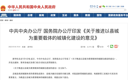 5月6日,中共中央辦公廳、國務(wù)院辦公廳印發(fā)《關(guān)于推進以縣城為重要載體的城鎮(zhèn)化建設(shè)的意見》并發(fā)出通知,指出推...