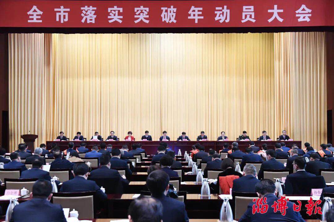 2021年2月18日,淄博召開(kāi)全市落實(shí)突破年動(dòng)員大會(huì),淄博市委書(shū)記江敦濤講話,淄博市委副書(shū)記、市長(zhǎng)馬曉磊主持會(huì)議...